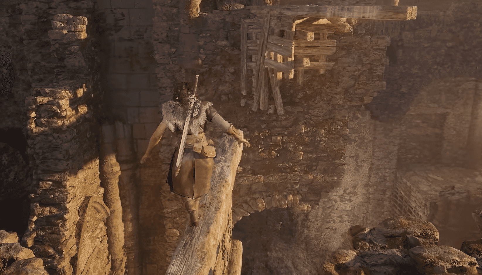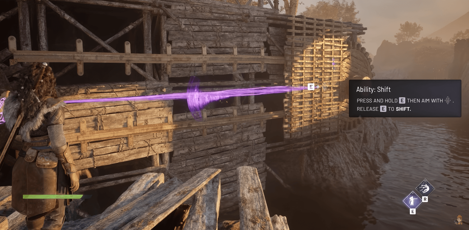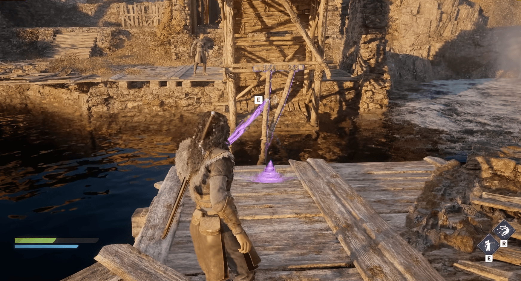 你的第一個收藏品尋找之旅始於本章開頭的塔樓。不要急著往前衝,尋找從結構上伸出的木樑。爬上去,然後沿著環繞塔樓外部的木製路徑向右移動。