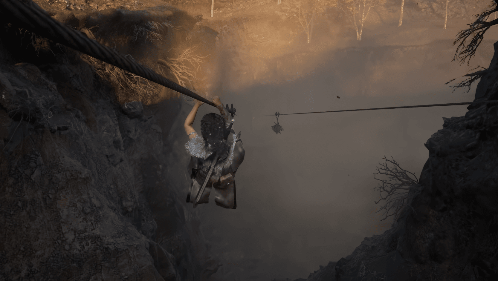 你的最後一個收藏品需要通過兩個連續的滑索。在第二個滑索後,立即爬上你左邊的牆壁,而不是繼續前進。