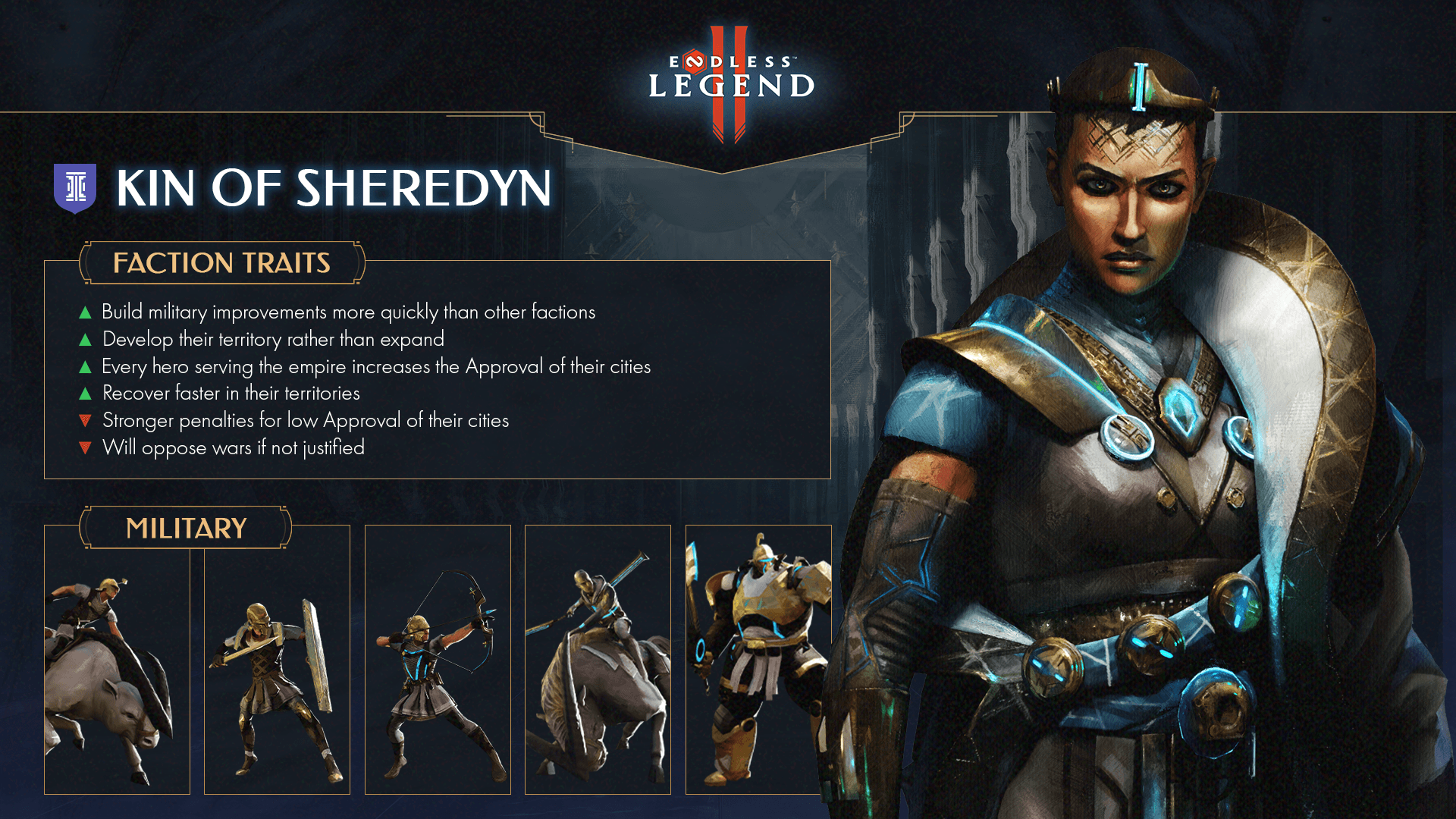 謝瑞丹之親為《Endless Legend 2》提供了完美的入門。這些星際陸戰隊擅長防禦性玩法,讓你可以在強大的防禦工事後龜縮,同時學習核心遊戲機制。他們的「築壕」系統獎勵防禦性建築,而「神聖戒律」則提供毀滅性的能力,例如軌道打擊。