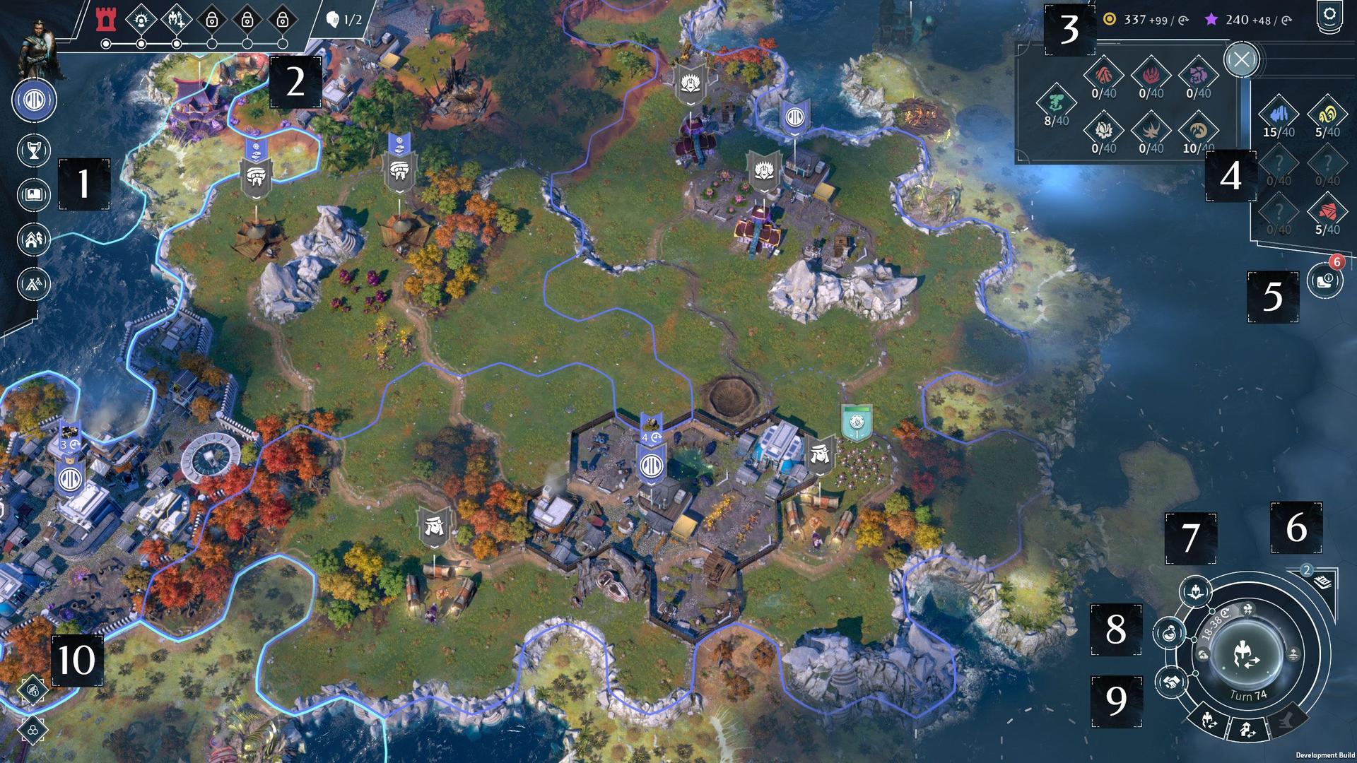 遊戲開始時,抵制立即建立首都的衝動。「準備好的定居點」增益會獎勵探索,提供與搜索回合數相等的大量收入獎勵。花費3-5回合偵察最佳地點。