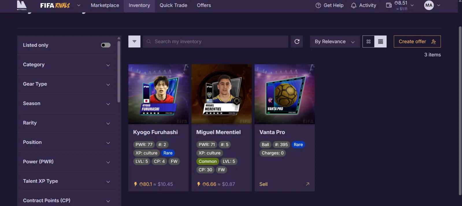 一旦鑄造完成,您的卡片就會進入 Mythical Marketplace 生態系統。您需要確保您的《FIFA Rivals》遊戲帳戶已正確連結到您的 Mythical 帳戶,因為這才能讓 NFT 顯示在您的物品欄中。
