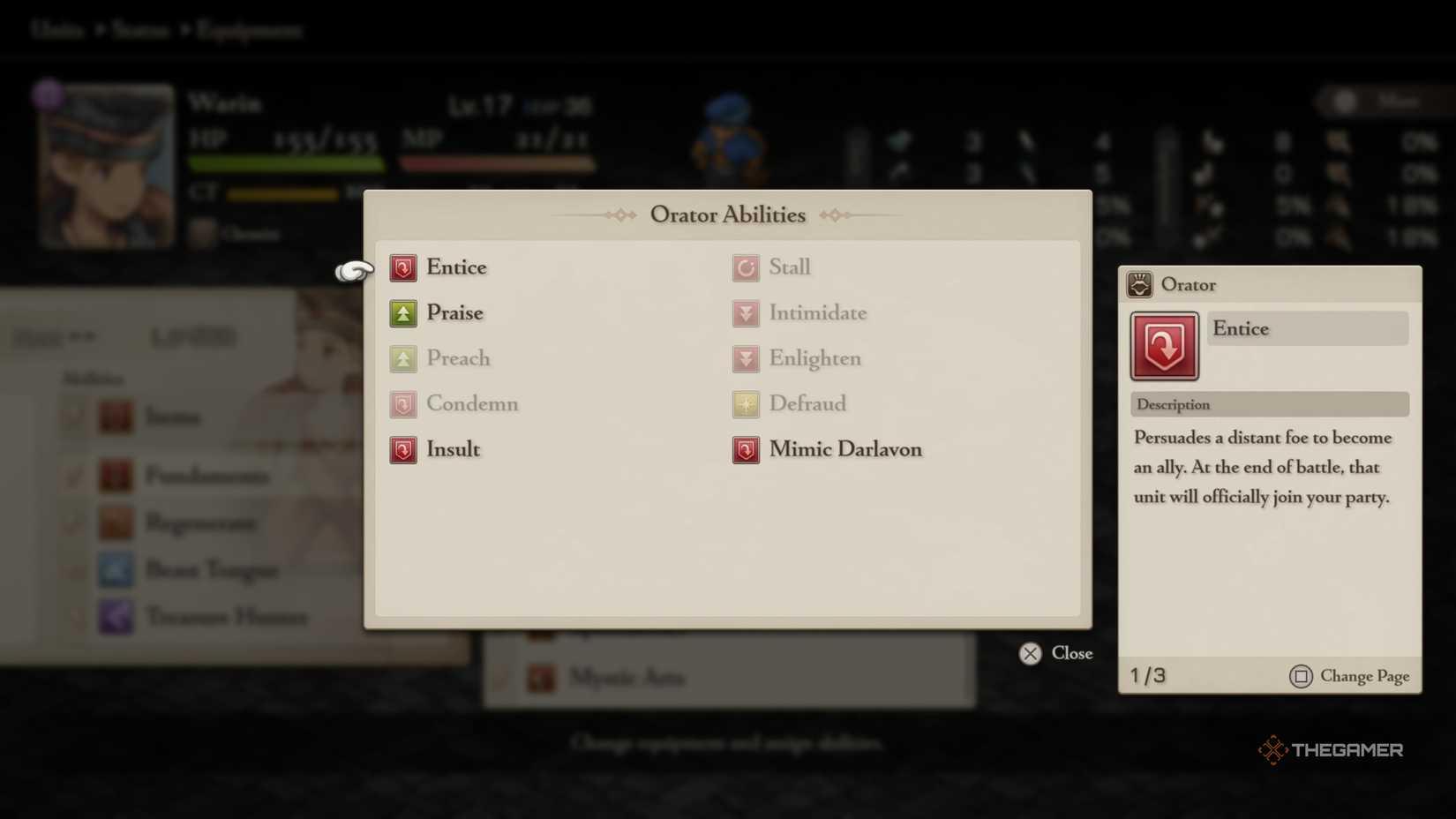 轉化戰場上的敵人需要精通演說家(Orator)職業的特殊能力。