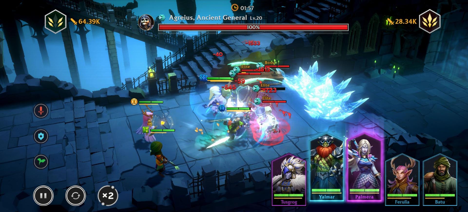 《Guild of Guardians》的核心玩法圍繞著 Roguelite 地城探索,玩家將組建擁有不同職責的守護者隊伍,例如坦克、刺客、戰士和輔助。每個地城探索都包含多波敵人,最終迎戰頭目,這需要策略性的站位——坦克和戰士在前排,而輸出和輔助則留在後排。戰鬥大部分是自動進行的,守護者會自動攻擊敵人並累積他們的終極技能,玩家可以在準備好時手動觸發。終極技能因守護者而異,可以造成傷害、治療盟友,或施加增益和減益效果。