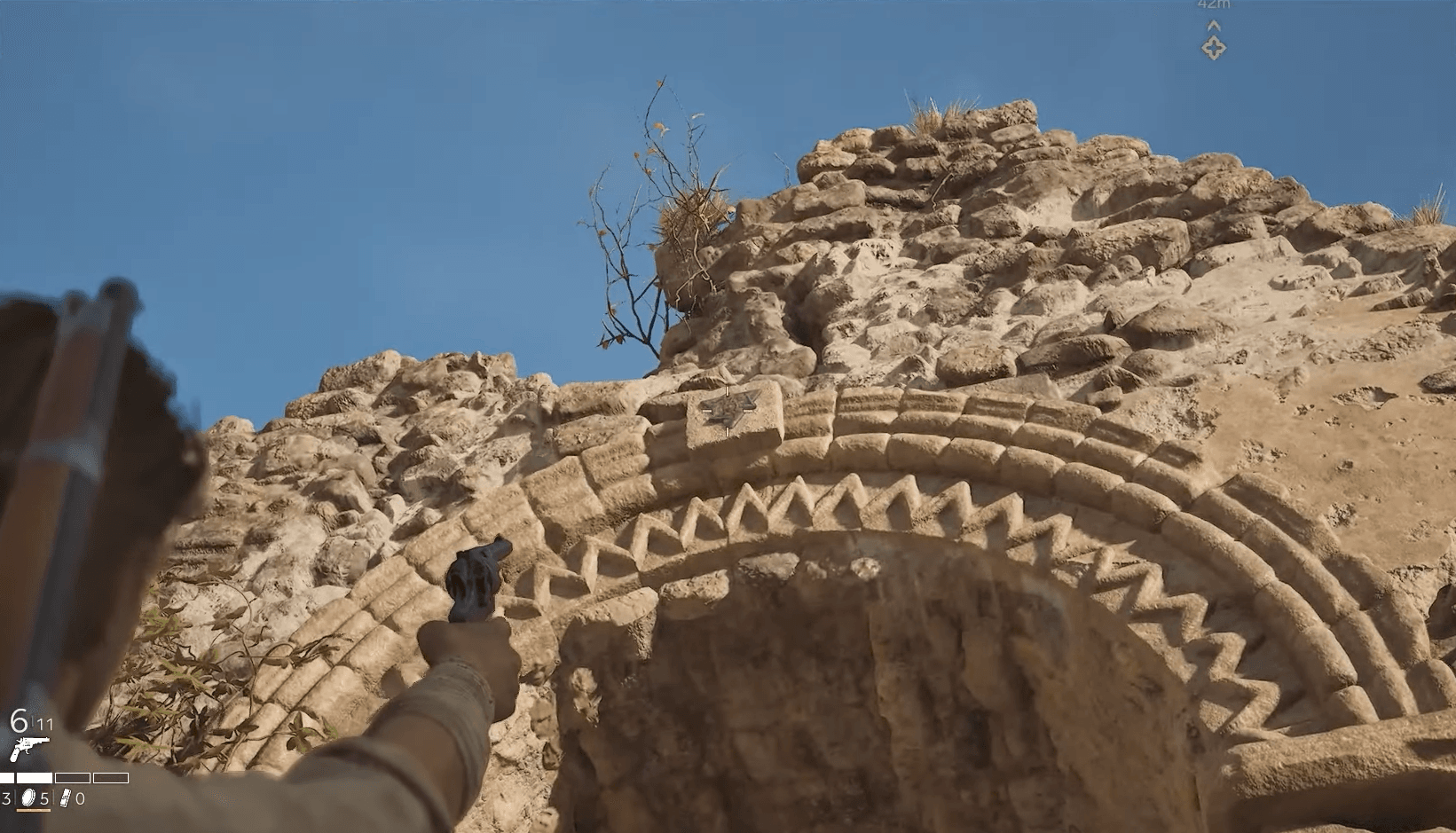 您的最後一個收藏品機會發生在您跟隨主線劇情逃離盜匪營地時。在完全離開該區域之前,抬頭看看標示著您出口路線的石拱門。