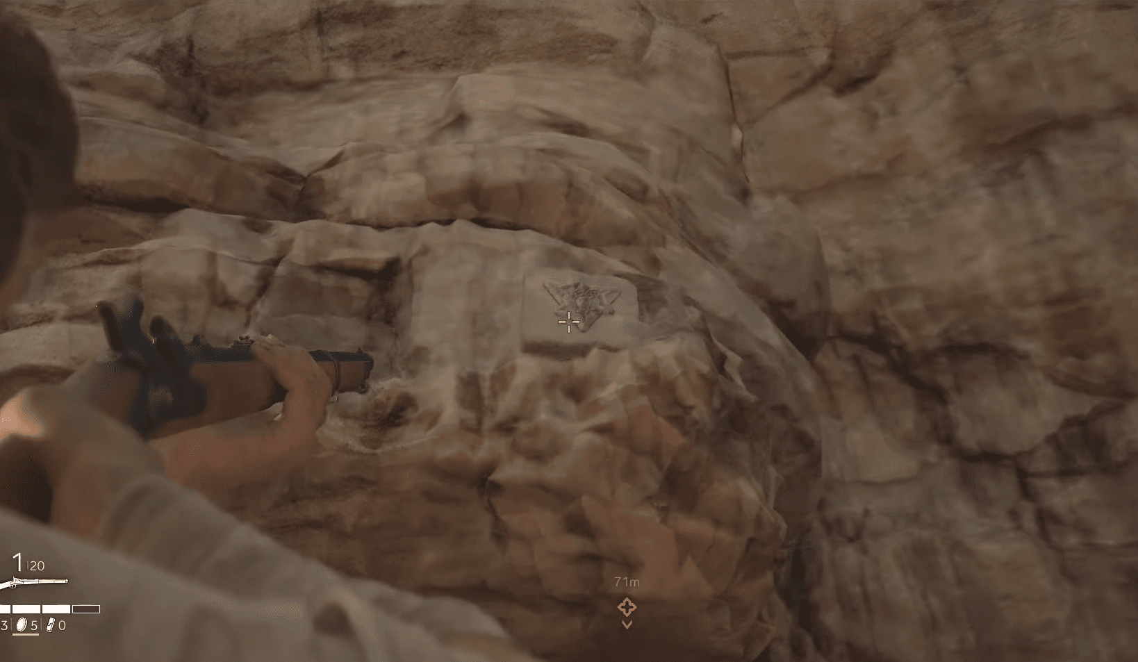 離開大房間,進入點綴著盜匪帳篷的開闊區域。不要直接朝著您的目標前進,而是探索營地的右側。第二個 Trinacria (2/3) 被雕刻在山壁上,與岩石表面融為一體。