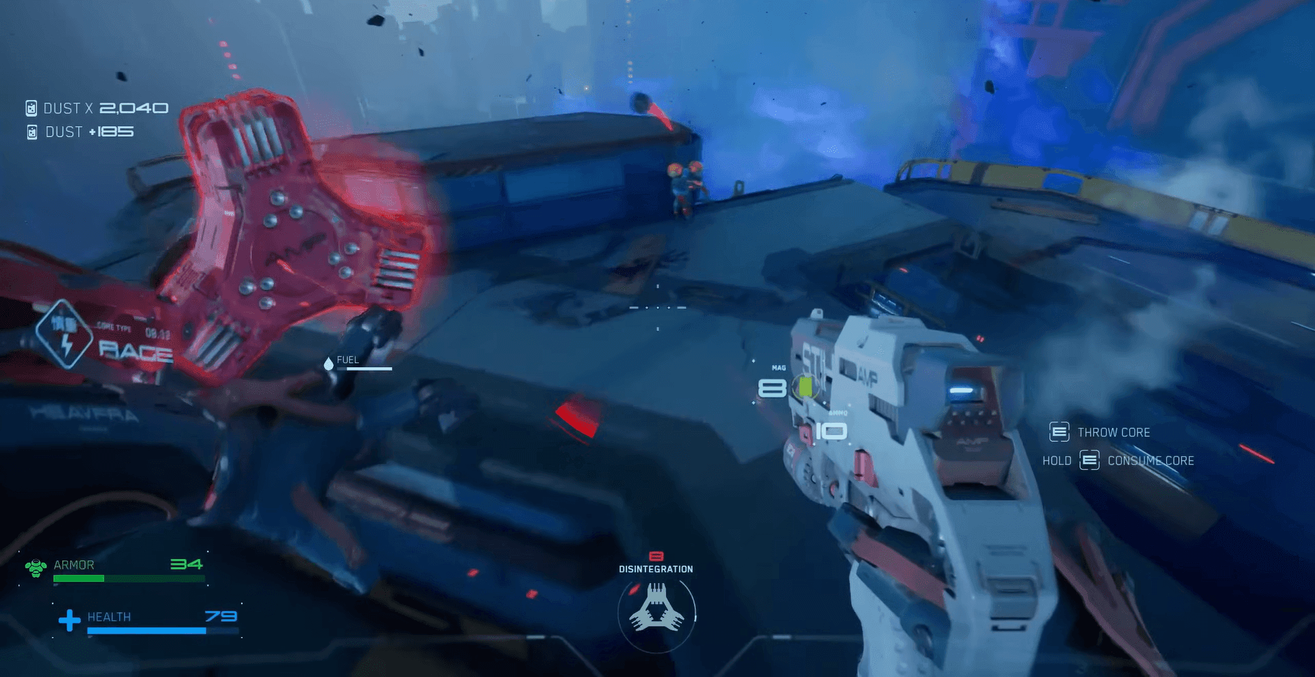 核心撕裂是 Metal Eden 的招牌機制,也是你最強大的攻擊選項。每個敵人都有一個核心,只要不在冷卻中,你就可以使用此能力將其取出。