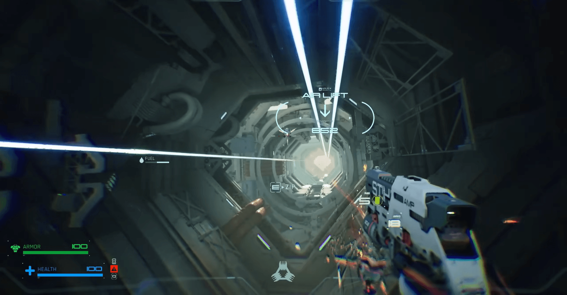 玩家可以依靠跳躍和二段跳進行基本導航,而噴射背包則可以在仔細管理燃料的情況下提供更長的滯空時間。衝刺能力在地面和空中都可用,讓你在躲避攻擊或快速縮短距離時具有靈活性。牆壁奔跑可以在結構上進行垂直移動,而滑索則可以快速長距離移動。為了更精確的定位,抓鉤可以派上用場,讓你迅速重新定位並建立戰術優勢。