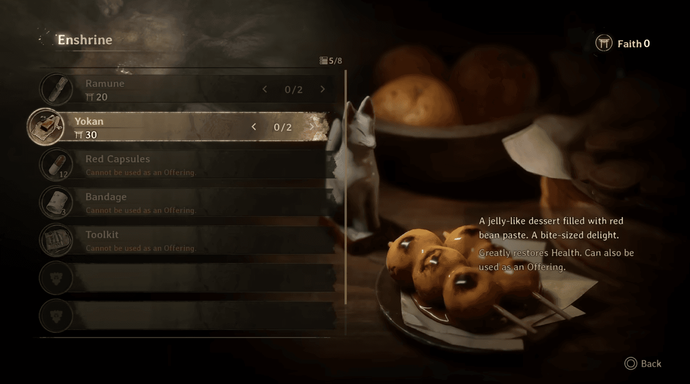 祠堂(Hokora Shrines)兼具存檔點和升級站的功能。獻上收集到的物品以獲得信仰點數,這些點數能解鎖關鍵的強化: