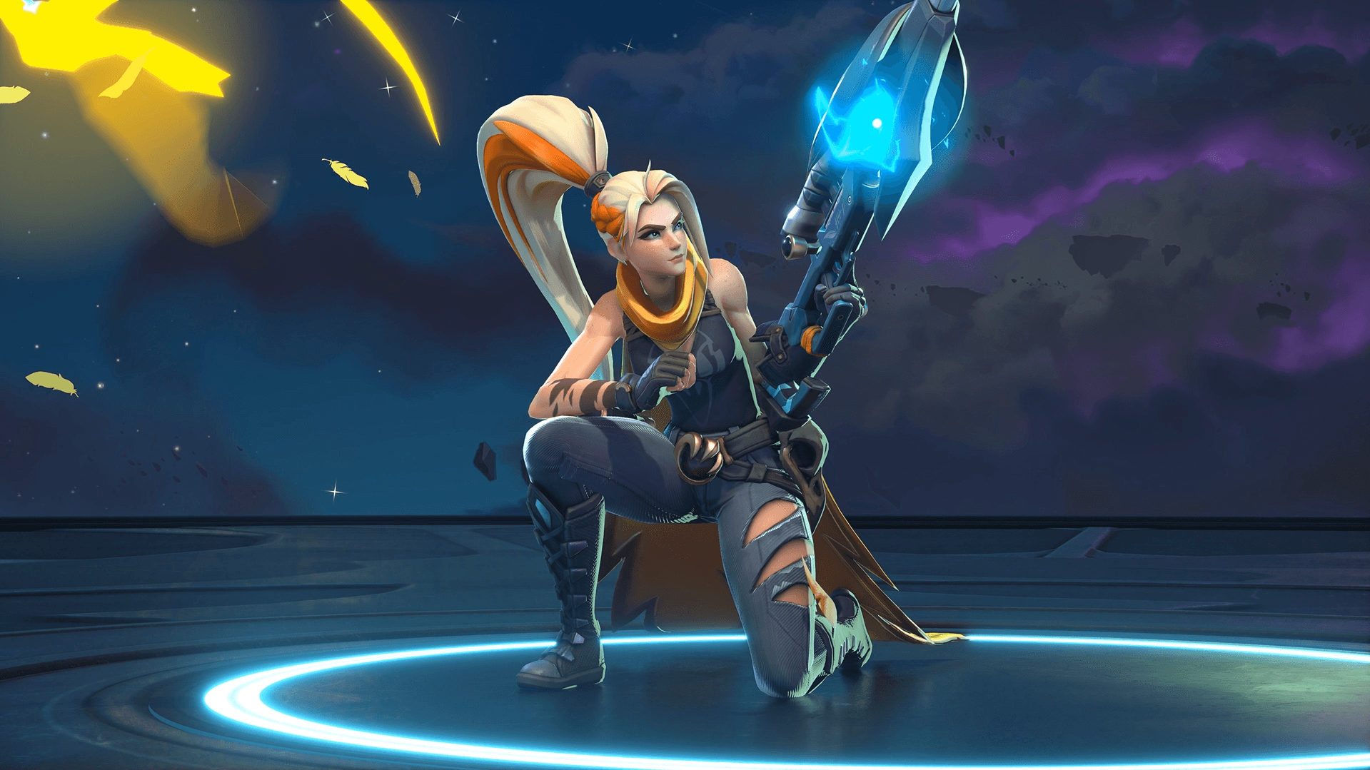 Shrike 擅長遠程攻擊,可以對敵人疊加標記,在適當時機造成巨額傷害。她通常被認為是新手的良好選擇,因為她的安全遊戲風格在以消耗傷害(poke damage)為主導的版本(meta)中特別有效。她的優勢包括基於距離的額外傷害、標記敵人以進行後續擊殺的能力,以及可以穿透地形擊中躲在掩體後目標的終極技能。