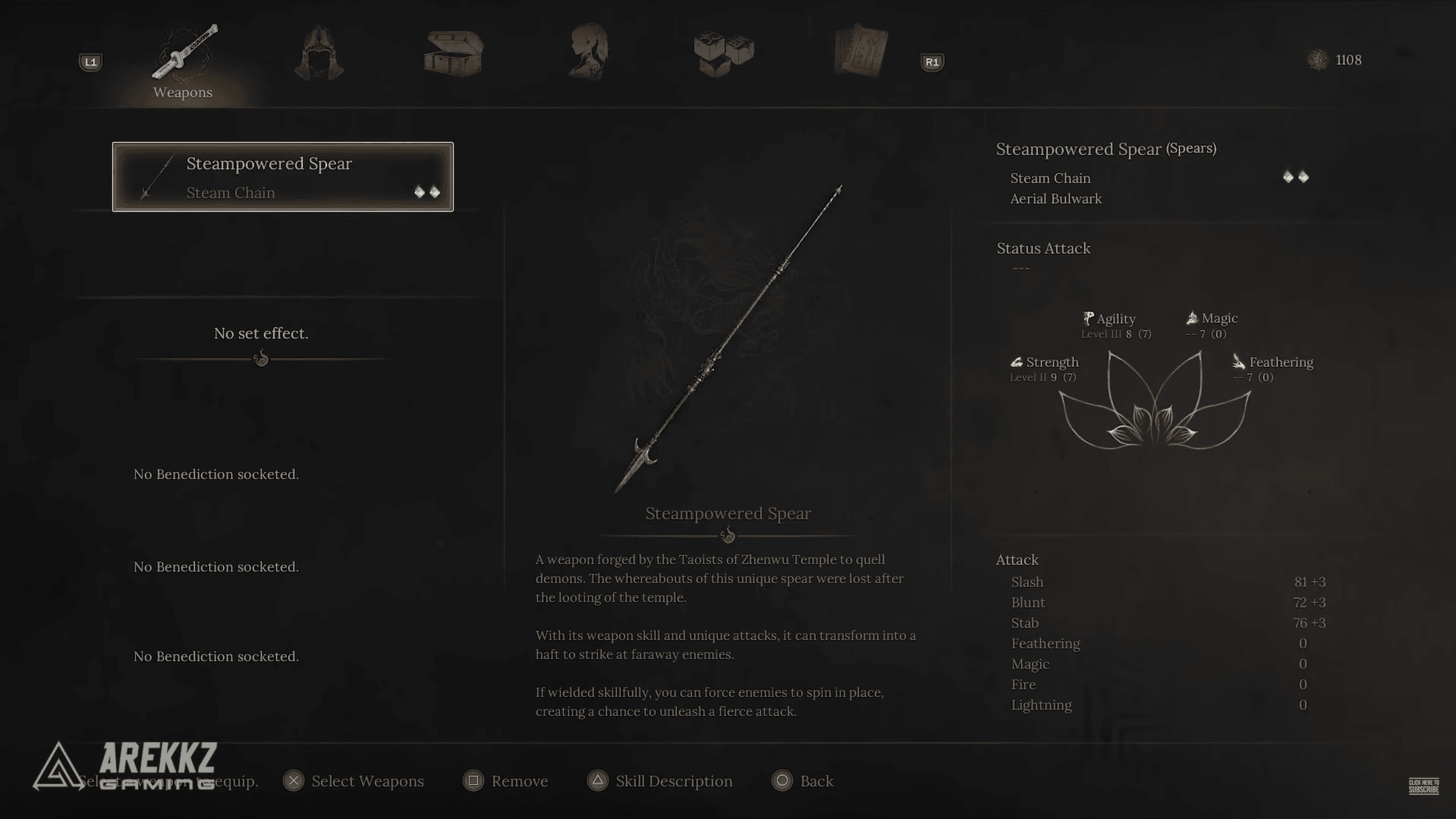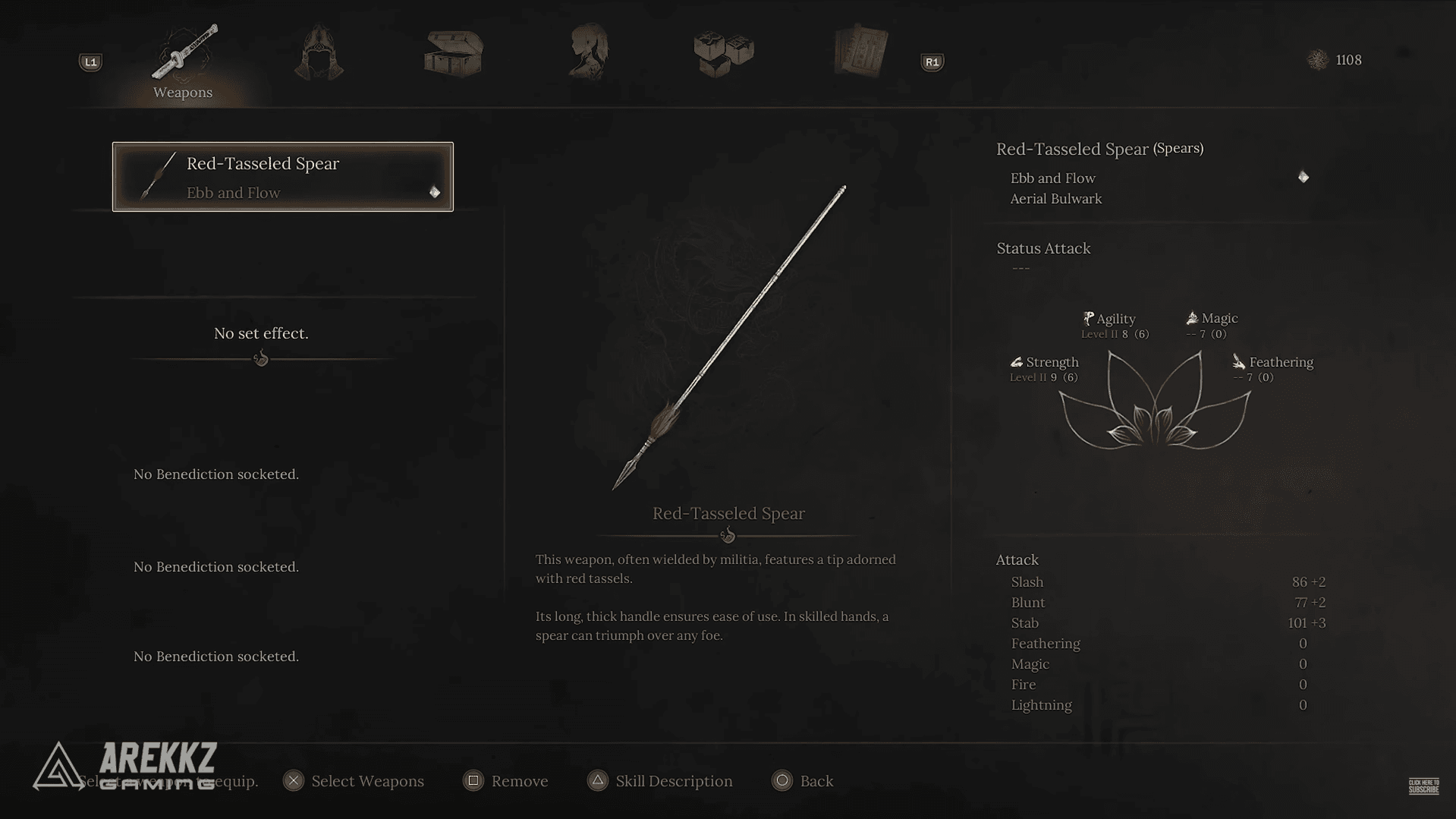 裝備這把長槍有幾個優勢。其加長的攻擊範圍讓你可以從更安全的距離與敵人交戰,降低受傷的風險。這把武器還內建反擊機制,讓你在戰鬥中有更多選擇。此外,它比你的初始裝備造成更多傷害,使其成為早期值得投資的武器。